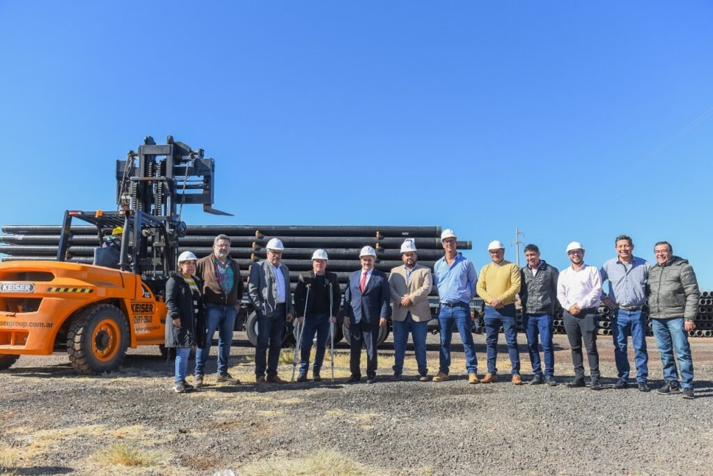 En cuanto a las cañerías, informó que son de 8 pulgadas y de 6 milímetros de espesor, de 12 metros de largo cada caño y que pesan unos 800 kilos cada uno. «Ya tenemos 16 kilómetros de cañería acopiados de los 130 que se necesitan», indicó.