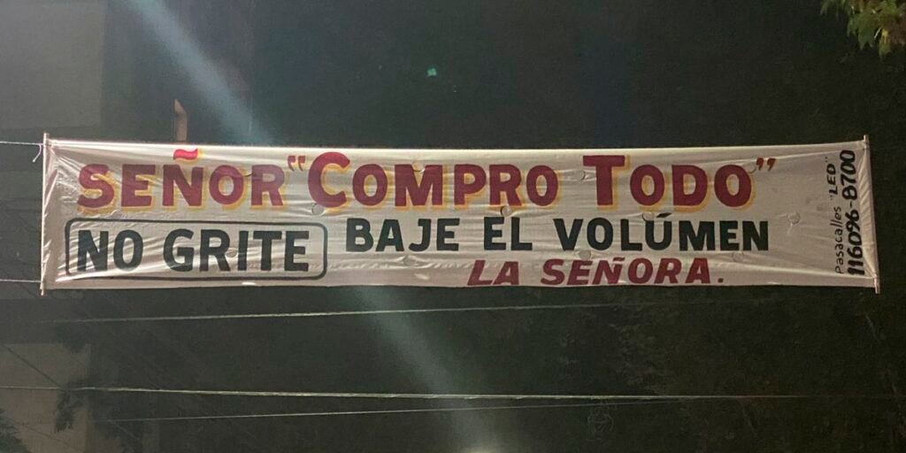 Una vecina se expresó de manera elocuente y creativa para quejarse por los gritos del señor “Compro Todo” que pasa en su camioneta a toda hora alterando la tranquilidad del barrio. Todos lo conocemos: el señor “Compro Todo” pasa por todos los barrios de la capital y sus alrededores. Porque no hay uno solo: son […]