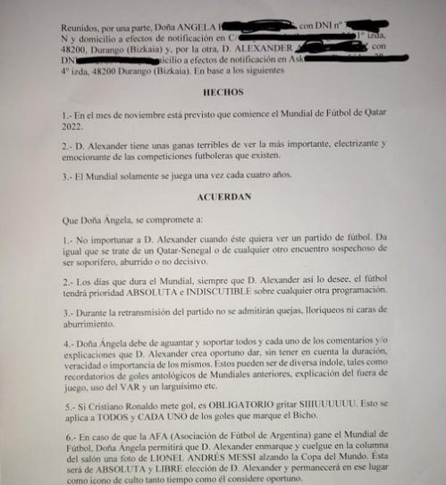 Cuando tienes pareja, tragarte ciertas aberraciones de partidos que acontecen en la fase de grupo del Mundial, pues se te complica. Véase el Catar vs Ecuador que se viene el domingo. Ante esto, un usuario me manda el acuerdo legal al que ha llegado con su mujer. Bien jugado. El contrato al que ha llegado […]