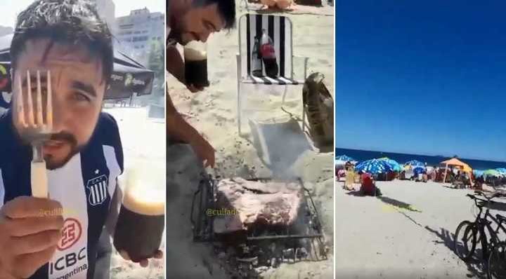 La presencia de Talleres en Río de Janeiro se nota. Desde hace un par de días, los hinchas albiazules fueron llegando a la ciudad carioca y tiñeron las playas con los colores azul y blanco.